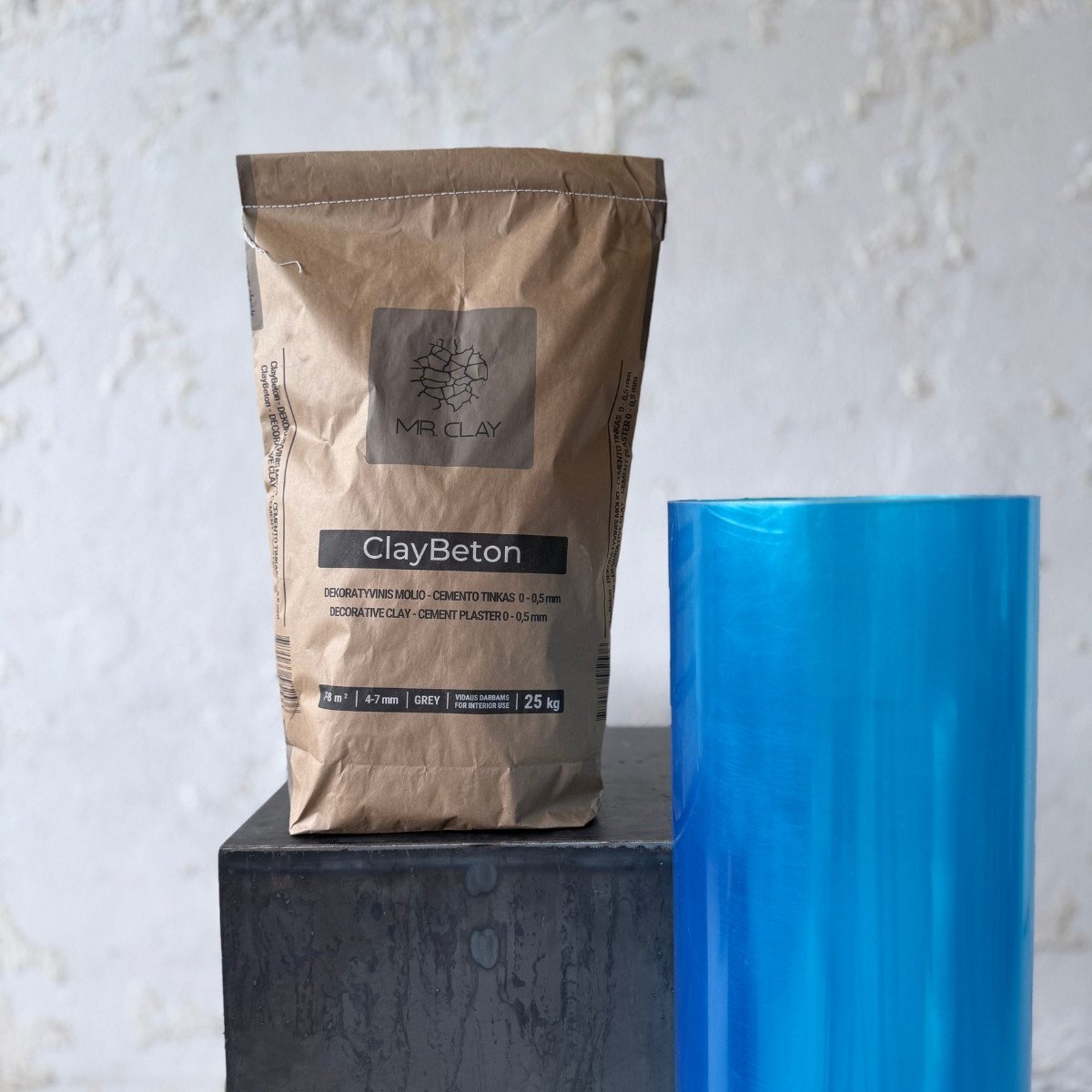 To achieve decorative walls with a concrete or travertine effect using ClayBeton plaster, the polyester sheet must be used as specified in the decoration instructions.