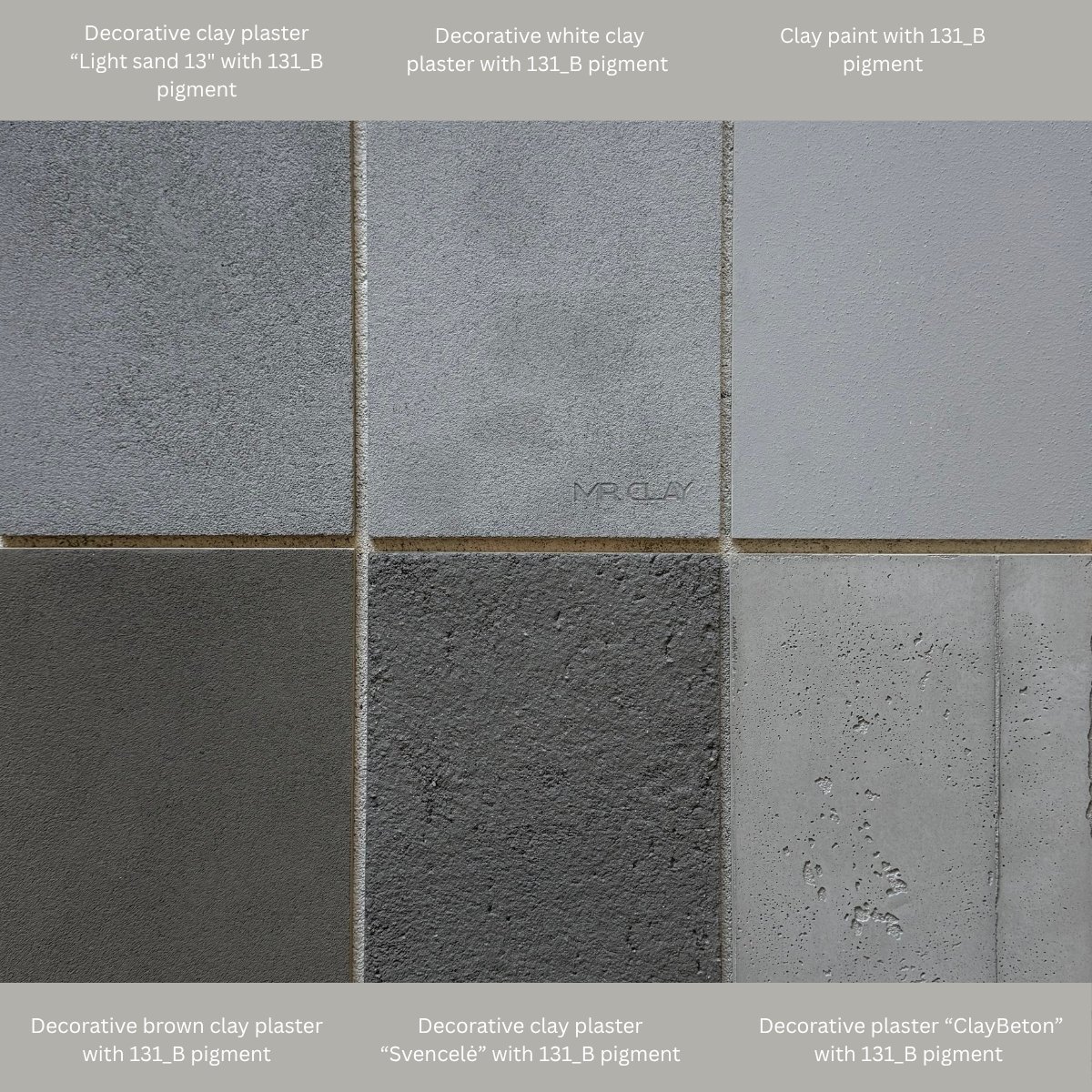 Clay paint is a dry mineral mixture to which the chosen mineral pigment is added. When selecting a color, use the standard color palette designed for white decorative clay plaster. The shade will not be identical, but very close.
