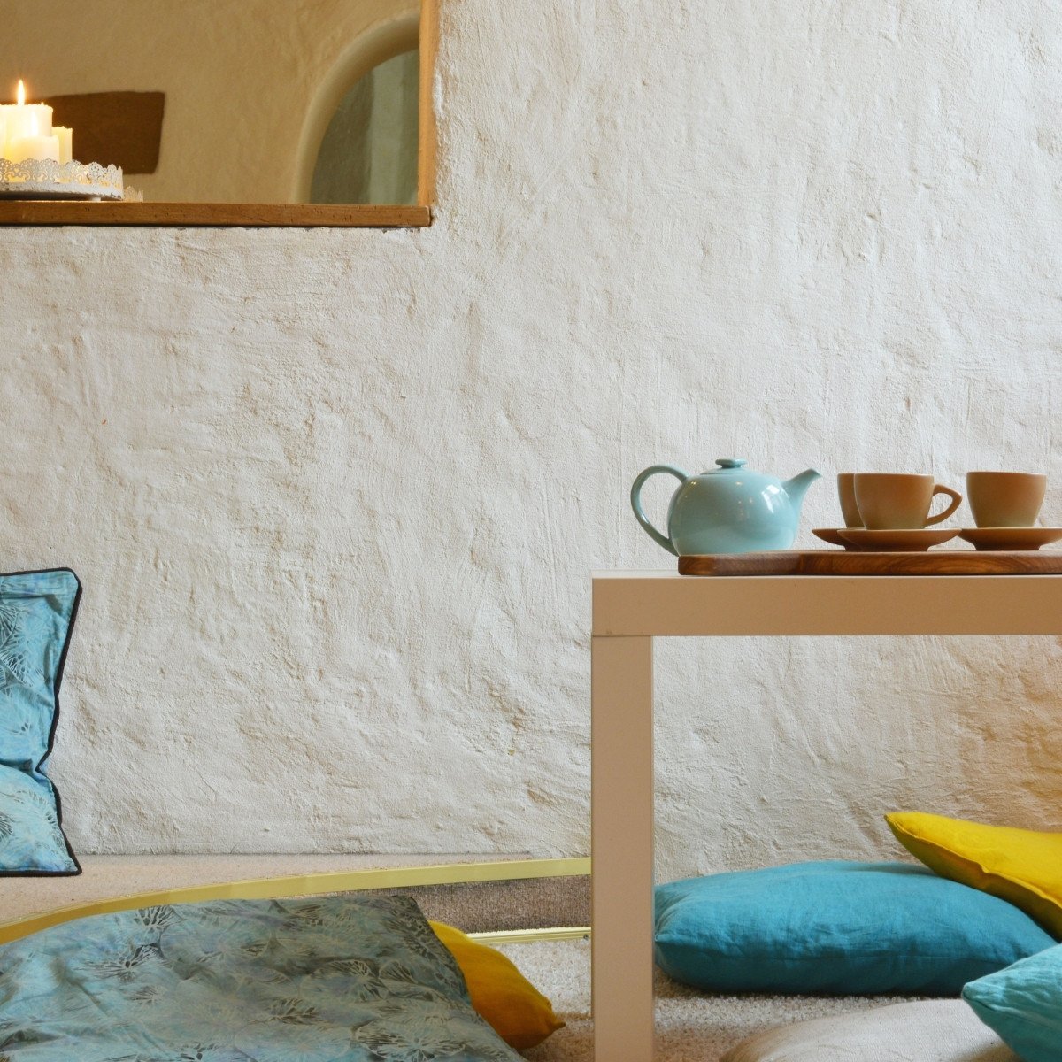 For other walls, ceilings, or areas near freestanding bathtubs or sinks — where there is no long-standing water and no intense hot steam — clay plaster can be used. In bathrooms, we recommend varnishing clay-plastered walls for practicality. If you know you will be careful and protect the surface, varnishing is not strictly necessary.