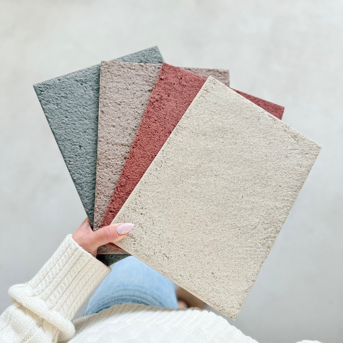 The base mixture is brownish in color. A palette of 15 standard colors has been developed, but it can also be tinted manually with any mineral pigments from the MR. CLAY collection, which includes more than 100 different shades.