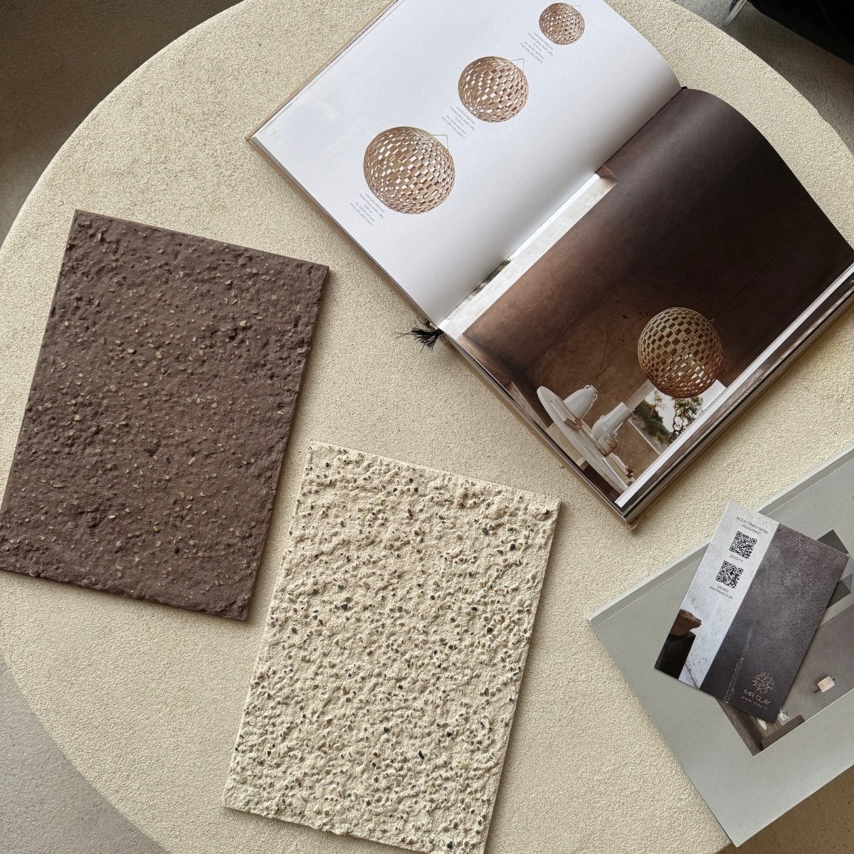 Brown decorative clay plaster is a mineral-based mixture designed for the final interior wall finishing of residential and commercial spaces. The product is natural and vapor-permeable, and it absorbs liquids, therefore it is suitable only for dry indoor areas where it will not come into direct contact with water, dirt, or grease.