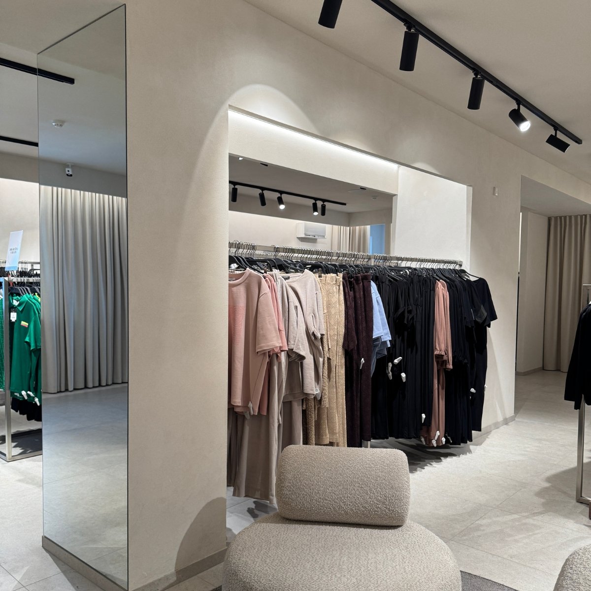 As you already know, clay plaster walls are completely natural and are often left as they are in homes, but in commercial spaces such as the Pakaita store, where there are a large number of people every day and the walls need to be cleaned more often than usual, we recommend varnishing the walls. This solution is not natural, but when a safe and aesthetic solution is needed, MR. CLAY Varnish No. 1 is perfect. This varnish is water-based, class 1 and completely matte, so the walls will not change their current color and will be protected from external damage.