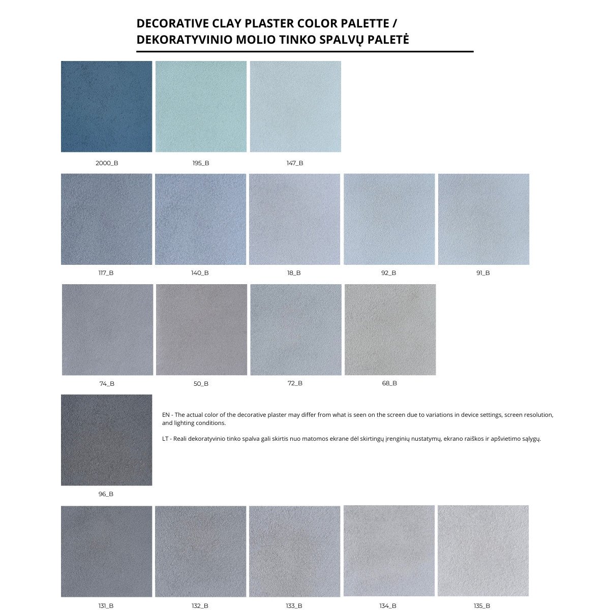 Užsisakius molio tinką su pasirinkta spalva, gausite užsakytą bazinės spalvos molio mišinį ir pigmento indelį. Spalvų pigmentai pagaminami pagal Jūsų užsakymą, todėl nėra keičiami ar grąžinami atgal.
