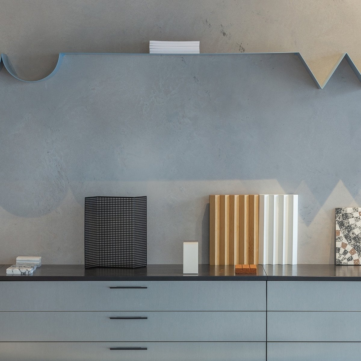 Molio - marmuro glaistas Finish nr. 9  glaistomas vieną arba du kartus, priklausomai nuo dekoravimo technikos. Glaistoma labai plonai  ~ 0,5 mm. Darbo metu vengti tiesioginių saulės spindulių ir skersvėjo.