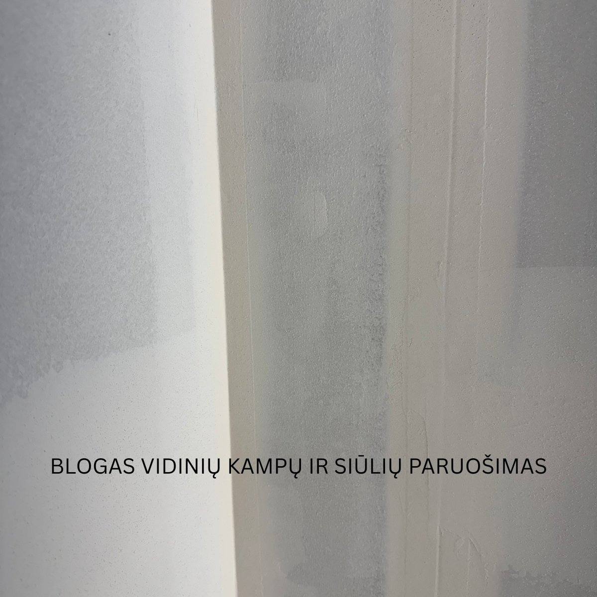 - Cementinį/kalkinį tinką gruntuokite kontaktiniu gruntu su kvarcinio smėlio užpildu, kruopščiai padenkite išorinius kampus.